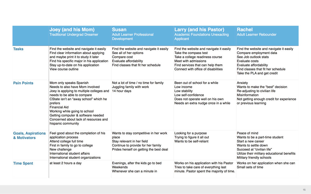 The main Cincinnati State website serves many business and user goals. It’s primary purpose is student recruitment. The website is also a portal to the college intranet (Blackboard) and a communication tool to stakeholders in the neighborhood, city, and region.
